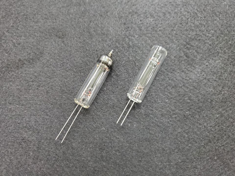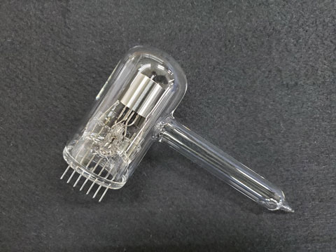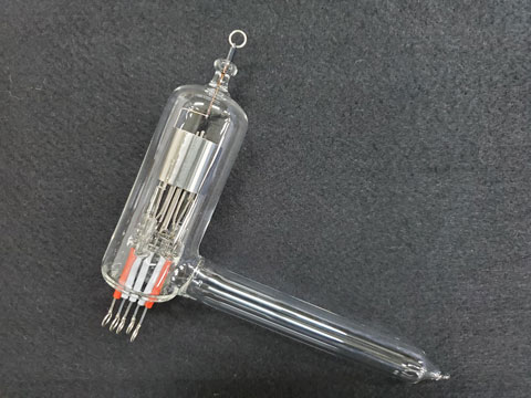 気体の熱伝導を利用した真空計です。加熱されたフィラメントの温度が圧力によって変化することを利用し、真空度を表します。